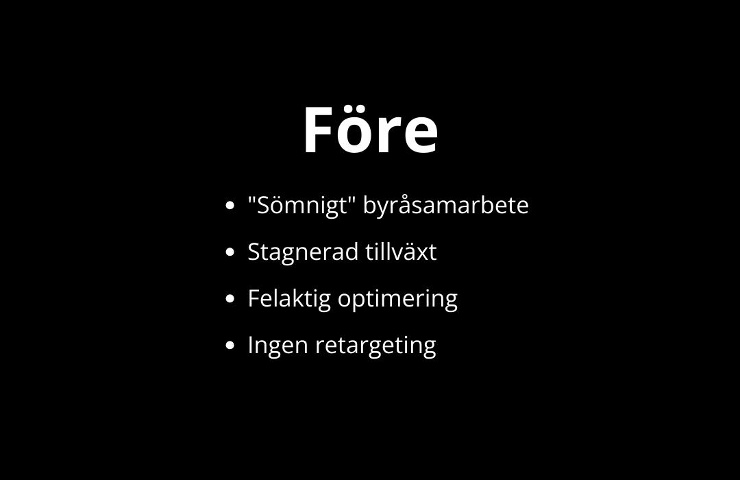 Vårt samarbete inleddes med en total omstrukturering av annonskontona. Genom att implementera en fullfunnel-strategi på Meta och skifta fokus mot konverteringsdrivna mål, i kombination med omfattande A/B-tester av både engagerande "in-action"-material och produktfokuserat innehåll, hittade vi snabbt rätt i målgruppen. Parallellt genomfördes en djupgående sökordsanalys och teknisk optimering i Google Ads för att maximera avkastningen inom de mest strategiska produktkategorierna.